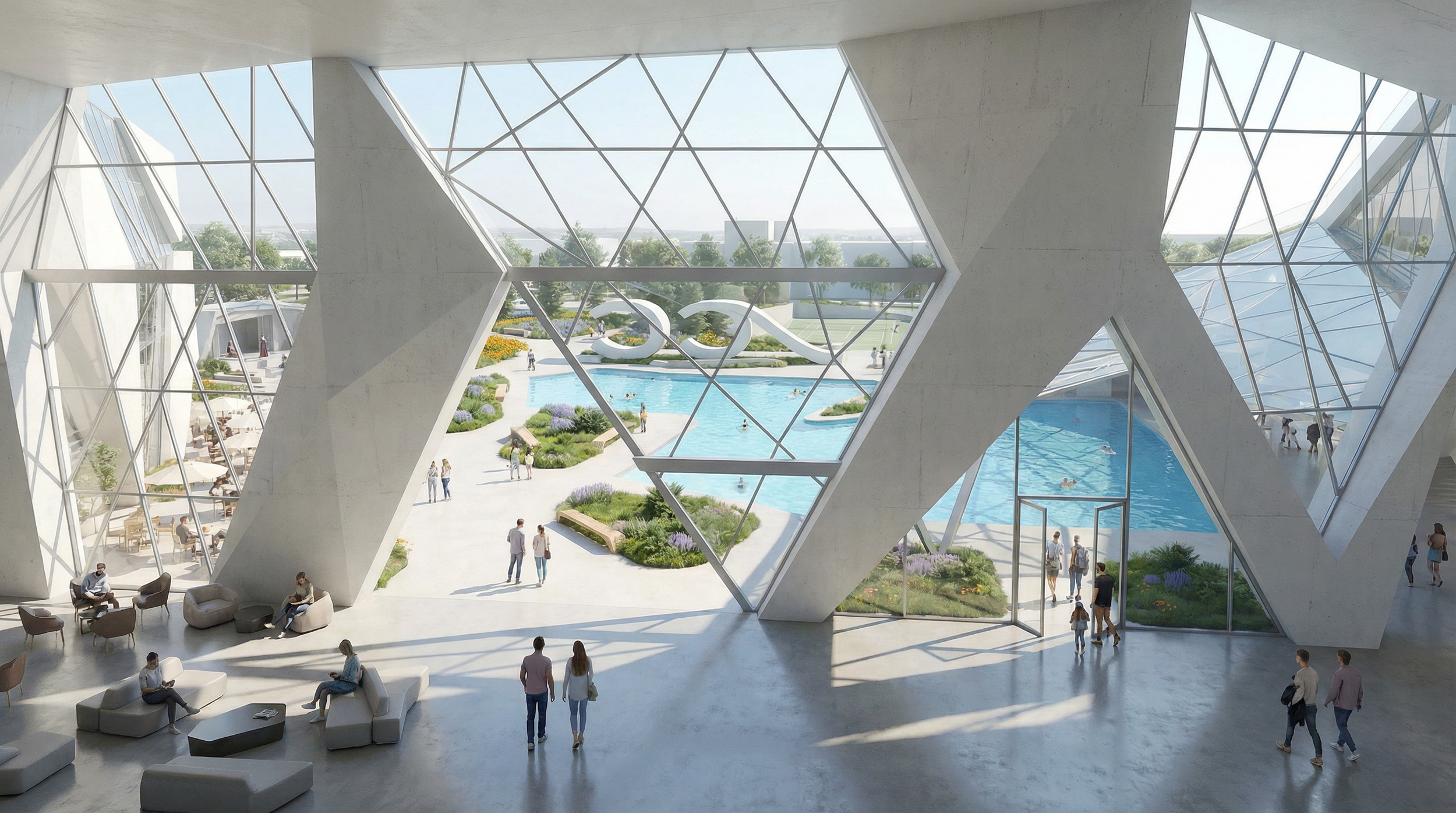 rCC dissolves the boundary between inside and outside. Contemporary architecture unfolds into roof gardens, open courtyards, and expansive terraces where daily life flows naturally between landscape and structure. Sunlit interior spaces connect seamlessly to outdoor piazzas, creating an experience that is both intimate and grand.